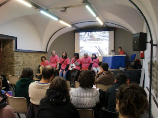 también la política de recortes generalizada a toda la población.Una vez acabada la parodia los diez ayunantes se han dirigido al centro sanitario Príncipe de Viana donde han hecho un reparto de información. Al mismo tiempo, de de viva voz ante los cientos de personas que iban a pasar consulta han criticado el desorbitado gasto del TAV que posibilita la política de recortes en sanidad.