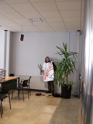 Hernani. En Hernani se han repartido centenares de panfletos contra los recortes en materia de sanidad destinados al TAV, se han colgado 3 pancartas y se ha llenado la fachada del anbulatorio con carteles con el emblema "AHT=Murrizketa sozialak".